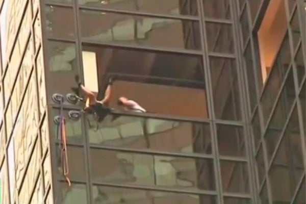 Foto: captura de video El magnate Donald Trump no se encontraba si quiera en la ciudad de Nueva York durante lo ocurrido. El hombre que este miércoles escaló durante más de dos horas por la fachada de la torre Trump en la Quinta Avenida había pedido entrevistarse con el candidato republicano y dueño del edificio, Donald Trump, dijo este jueves la policía al canal NY1.