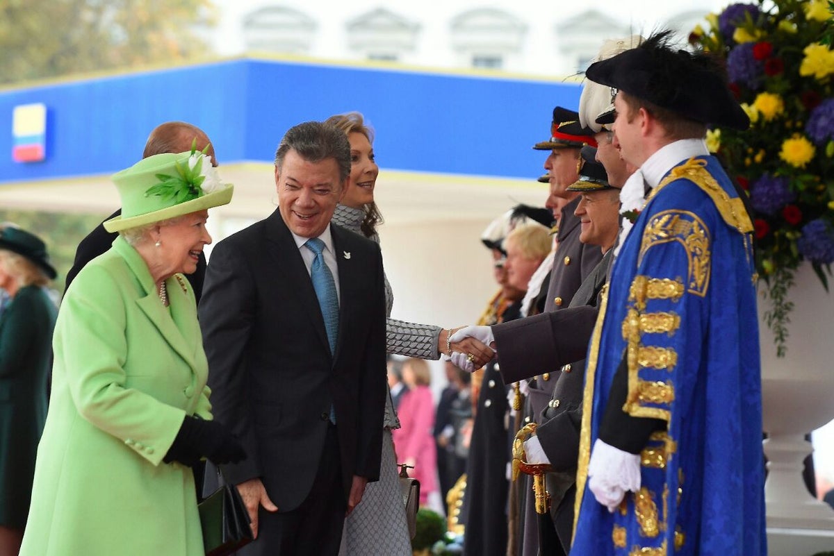 El presidente colombiano Juan Manuel Santos es atendido en Londres con todos los honores por la reina Isabel II de Inglaterra al inicio de una visita de Estado en que el proceso de paz será también protagonista. "Es un gran honor para Colombia. Nunca un presidente de Colombia ha sido invitado a una visita de Estado al Reino Unido", dijo el mandatario poco antes de aterrizar en Londres.