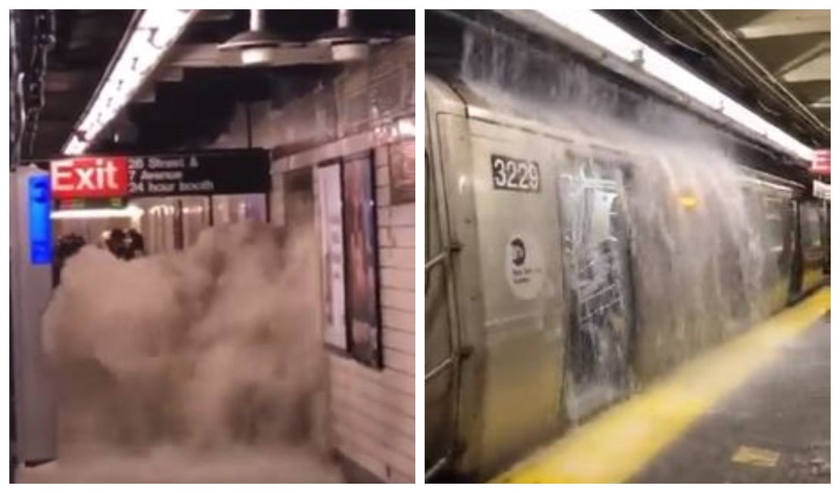 En la ciudad de Nueva York, prácticamente todas las líneas del metro quedaron suspendidas al ser inundado por auténticas riadas y cascadas de agua que caían tanto por las escaleras de las estaciones como por los techos de los túneles.