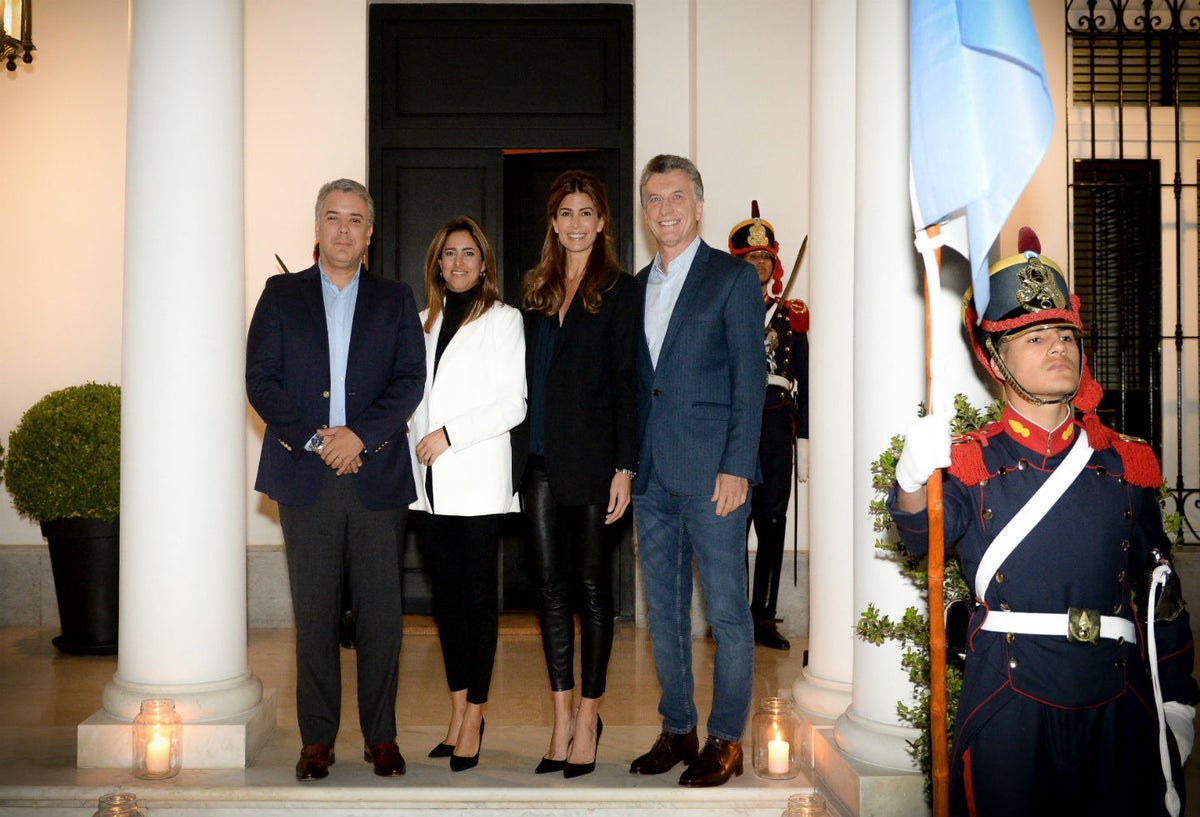 Presidente Iván Duque viajó junto a la primera dama a Argentina, donde fue recibido por su homólogo Mauricio Macri y su esposa. Crédito: AFP
