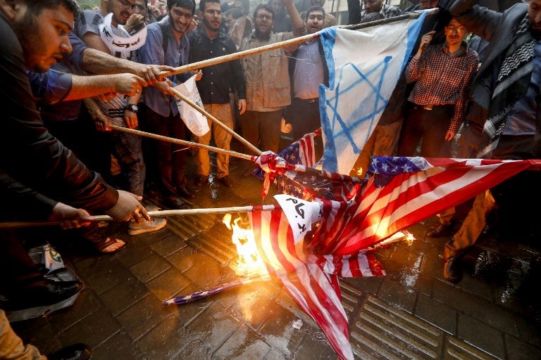 Los iraníes quemaron banderas de EE. UU. durante una manifestación antiestadounidense frente a la sede de la exembajada norteamericana en la capital de Irán, Teherán / AFP