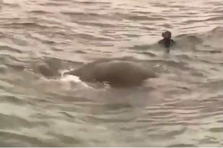 Lanchas y buceadores salvaron a un elefante que cayó al mar