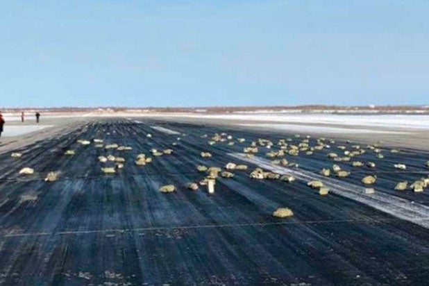Las fotos difundidas por las autoridades muestran decenas de lingotes de metal precioso desparramados en la pista nevada del aeropuerto y policías inspeccionando el agujero en el aparato. Los anuncios no precisan si se trata de oro o de plata.