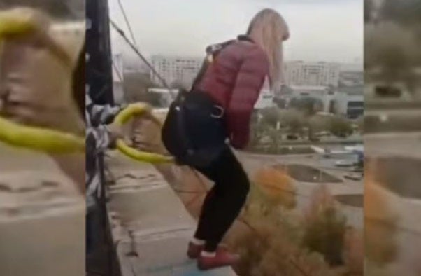 En videos difundidos en redes sociales, se ve a la mujer lista para saltar y, aparentemente, con todas las medidas de seguridad.