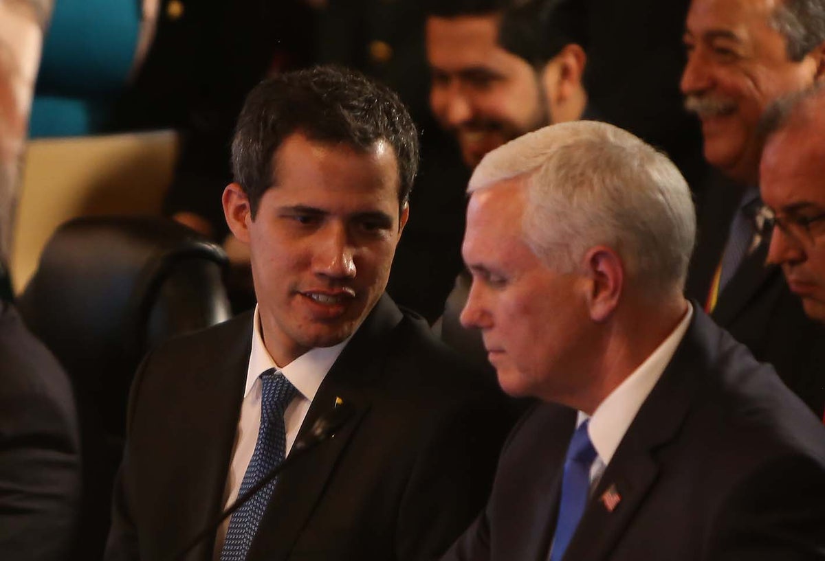 Juan Guaidó y Mike Pence, en la reunión del Grupo de Lima, en Bogotá