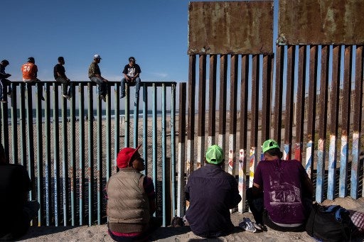 Un grupo de migrantes de países centroamericanos pobres, en su mayoría hondureños, que se dirigen a Estados Unidos con la esperanza de una vida mejor, se ven cerca de la frontera de Estados Unidos en Playas de Tijuana, México, el 13 de noviembre de 2018.