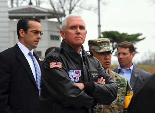 Mike Pence, que llegó el domingo a Corea del Sur, se desplazó este lunes a la frontera entre las dos Coreas.