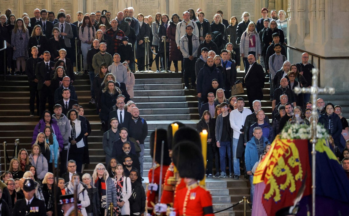 Mandatarios como el presidente de Estados Unidos, Joe Biden, y los reyes de España, Felipe VI y Letizia, rindieron hoy asimismo tributo a Isabel II en su capilla ardiente.