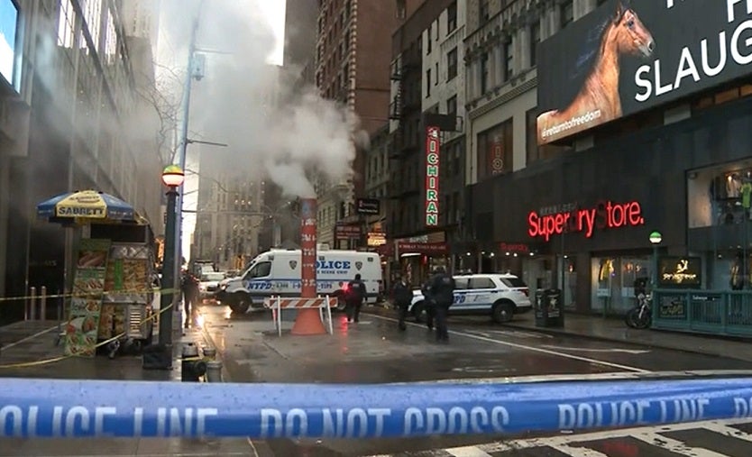 Mujer muere en Times Square al caerle escombros de la fachada de un edificio