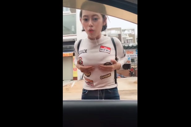 Una joven protagonizó un embarazoso momento luego de que se parara delante de un vehículo para ‘retocarse’ un poco.