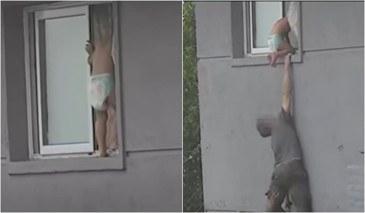 En las imágenes se logra apreciar como el menor sale solo con un pañal puesto y camina tranquilamente por la cornisa de la ventana de su vivienda, ante la mirada de los algunos vecinos que se mostraron preocupados por lo que estaba aconteciendo.