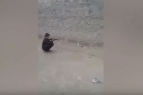 En las imágenes se puede apreciar la tranquilidad con la que el menor empuña el rifle, apunta sobre la lata que estaba en la cabeza de otro niño, y dispara.