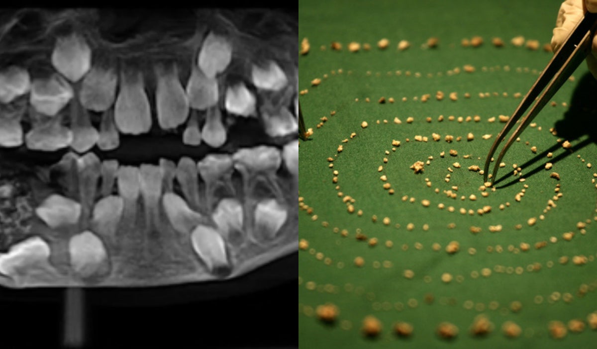 “la radiografía y la tomografía mostraron múltiples dientes rudimentarios en un tejido similar a una bolsa”, indicó el médico Senthilnathan.