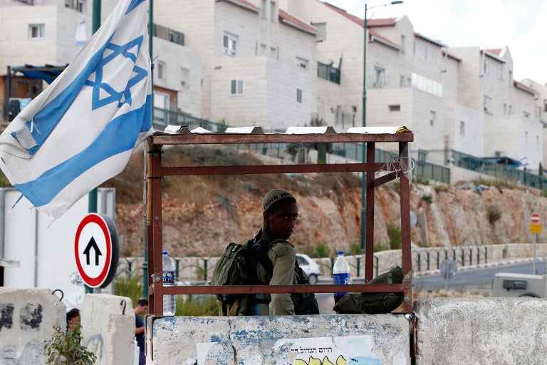 Un soldado israelí cuidando el ingreso a una colonia palestina / Foto de AFP