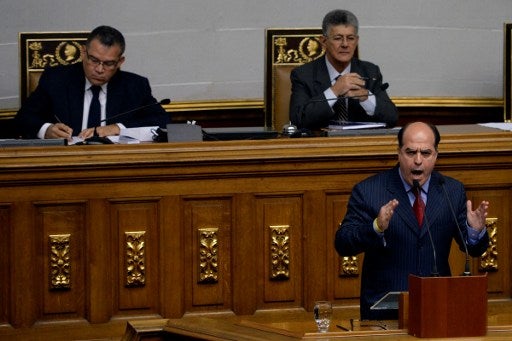 El nuevo jefe del Parlamento venezolano, Julio Borges, anunció que el presidente Nicolás Maduro será declarado en abandono del cargo por incumplir sus deberes y hundir al país petrolero en una de las mayores crisis de su historia. Foto: AFP