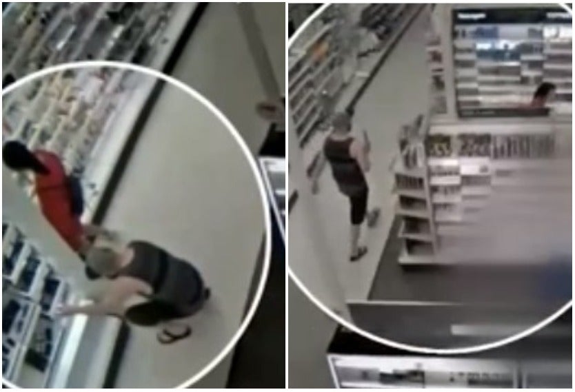 Un video de seguridad de una tienda en un centro comercial ubicado en Cypress, California, muestra a un padre confrontando a un hombre que le estaba tomando fotos a su hija de 15 años, mientras ella revisaba los anaqueles con productos.