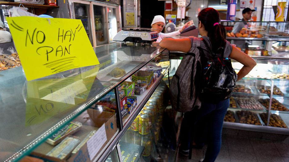 "No hay pan", dice un letrero en una panadería en Caracas.