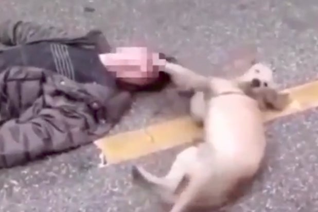 Ante el hecho, ocurrido en China, varios transeúntes captaron en video el momento en que el cachorro se retuerce al lado de su amo e intenta reanimarlo.