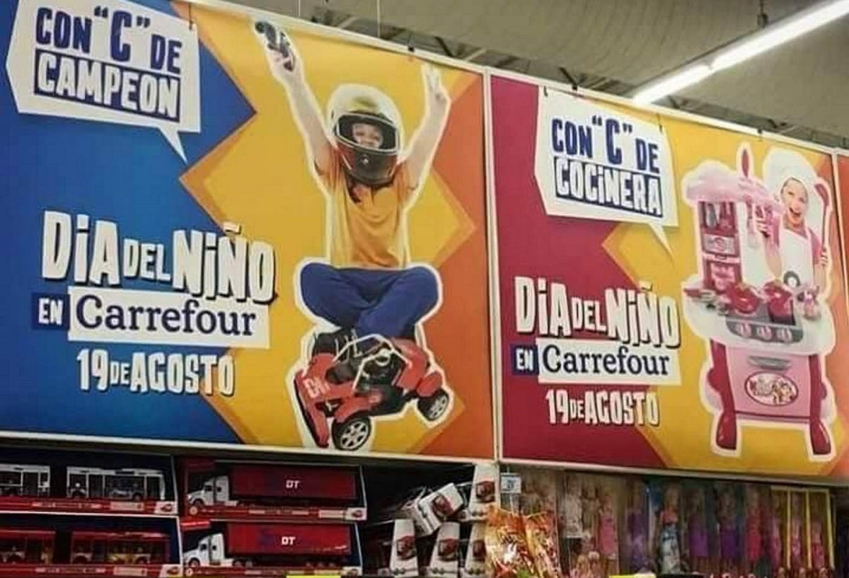 Toda una polémica se creó a partir de una campaña publicitaria de la cadena de supermercados Carrefour en la que se señala a las niñas como cocineras y a los niños como campeones.