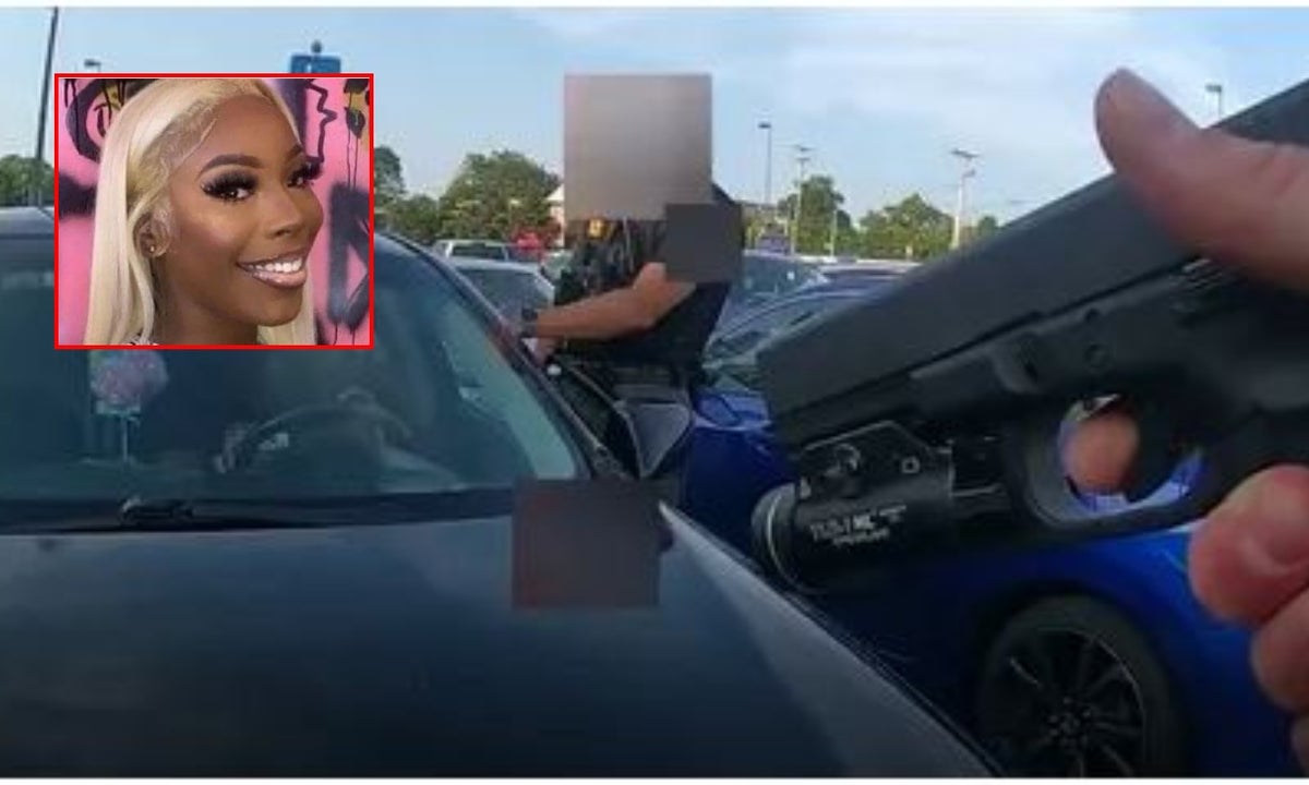 Luego se puede ver a Young girando el volante del automóvil mientras el oficial al lado de su ventana continúa instándola a salir del vehículo.