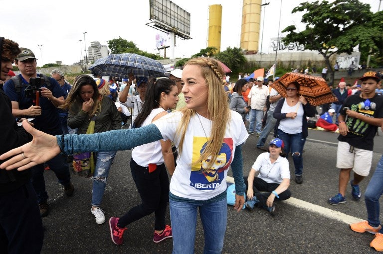 La esposa de López -que cumple en arresto domiciliario tras más de 3 años en un penal militar una condena de casi 14 años de cárcel- estuvo acompañada en el aeropuerto por los embajadores de España, Alemania e Italia en Caracas, países cuyos jefes de Gobierno la habían invitado para una serie de reuniones sobre Venezuela.