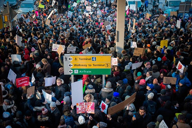 En Nueva York, más de una decena de personas fueron retenidas en el aeropuerto internacional JFK, incluidos dos ciudadanos iraquíes que habían obtenido visados especiales para trasladarse a EE.UU. Uno de ellos, Hameed Jhalid Darweesh, fue liberado tras horas de detención y después de la mediación de varias organizaciones y de dos congresistas demócratas.