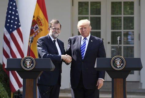 El jefe del Gobierno español, Mariano Rajoy, regaló hoy un jamón al presidente de Estados Unidos, Donald Trmp, con motivo de su visita a la Casa Blanca.