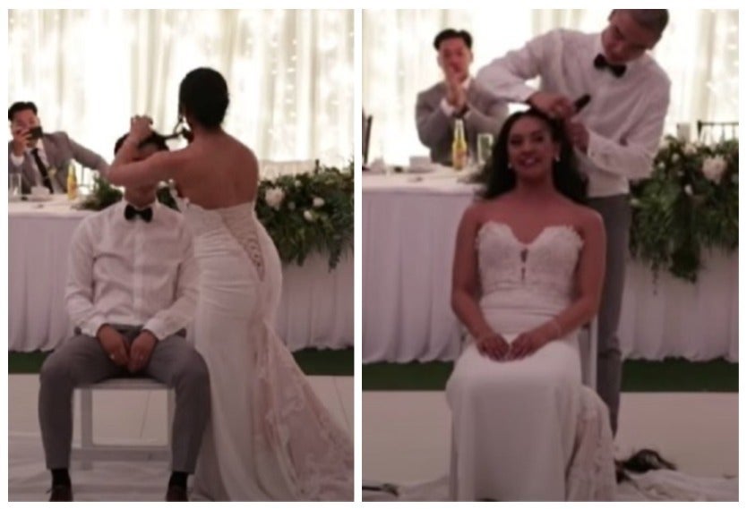 Una pareja de origen filipino, sorprendió a sus familiares y amigos el día de su boda, cuando en plena recepción ambos decidieron raparse la cabeza en solidaridad con la madre de la novia quien luchaba contra el cáncer.