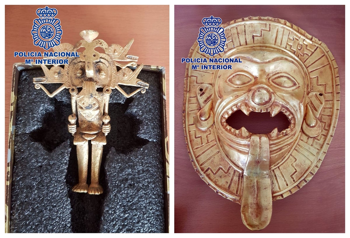 La policía española anunció este jueves haber confiscado en Madrid una máscara de oro prehispánica de alto valor cultural, parte de una operación que desmanteló en Colombia una red que vendía piezas precolombinas saqueadas en el mercado negro internacional.