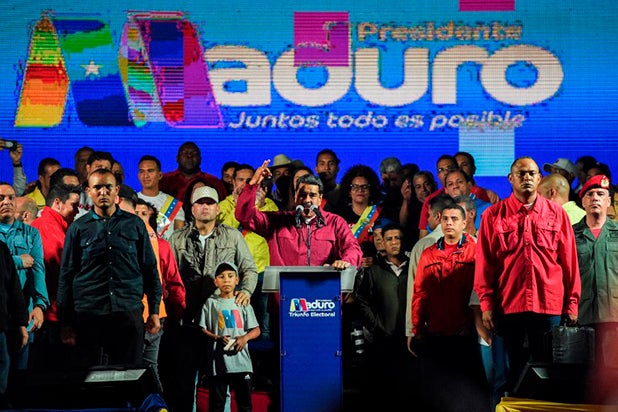 El presidente de Venezuela, Nicolás Maduro, tras ser reelegido en Venezuela. Aquí con sus simpatizantes en Caracas Crédito: AFP