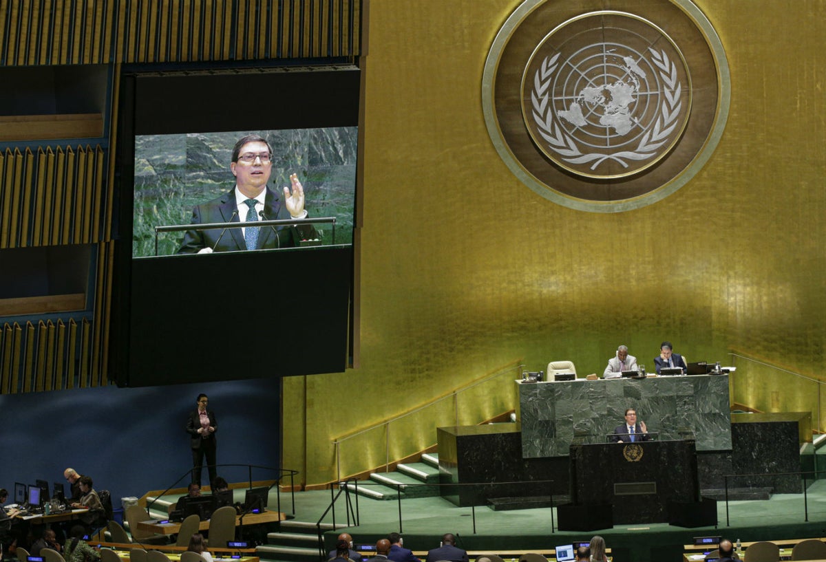El canciller comenzó su discurso ante la mayor tribuna diplomática mundial quejándose de las recientes sanciones a compañías extranjeras que transportan combustible a la isla desde Venezuela y otros países, y que han provocado una crisis energética.