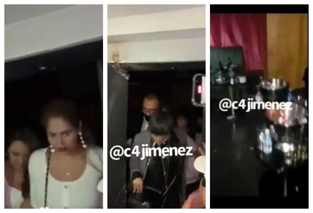 Acto seguido comienzan a salir hombres y mujeres, con trajes y vestidos, la mayoría de los cuales sin cubrebocas y algunos con botellas en la mano.