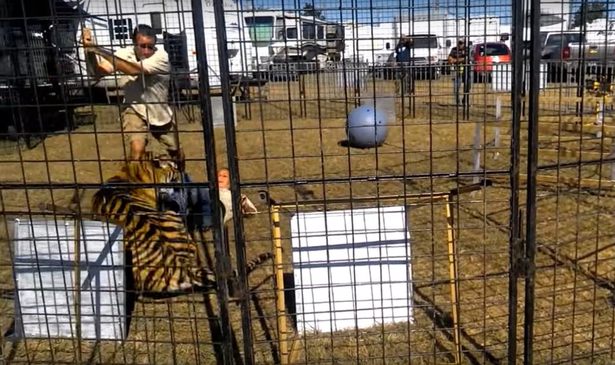 Momentos de tensión que se vivieron en la Feria Interestatal de Pensacola, en Florida, en medio de una muestra de felinos.