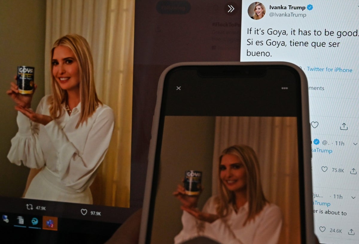 "La máquina de difamación de la izquierda radical fracasó, la gente está comprando como loca", celebró el mandatario cuya hija que trabaja como asesora de gobierno, Ivanka, posó con una lata de frijoles negros en Twitter con el mensaje "Si es Goya, tiene que ser bueno".