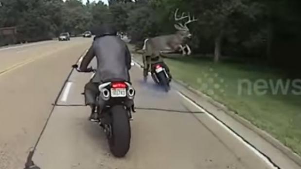 Un grupo de motociclistas se vio sorprendido por un venado que se atravesó por la vía haciendo que uno de los conductores cayera.