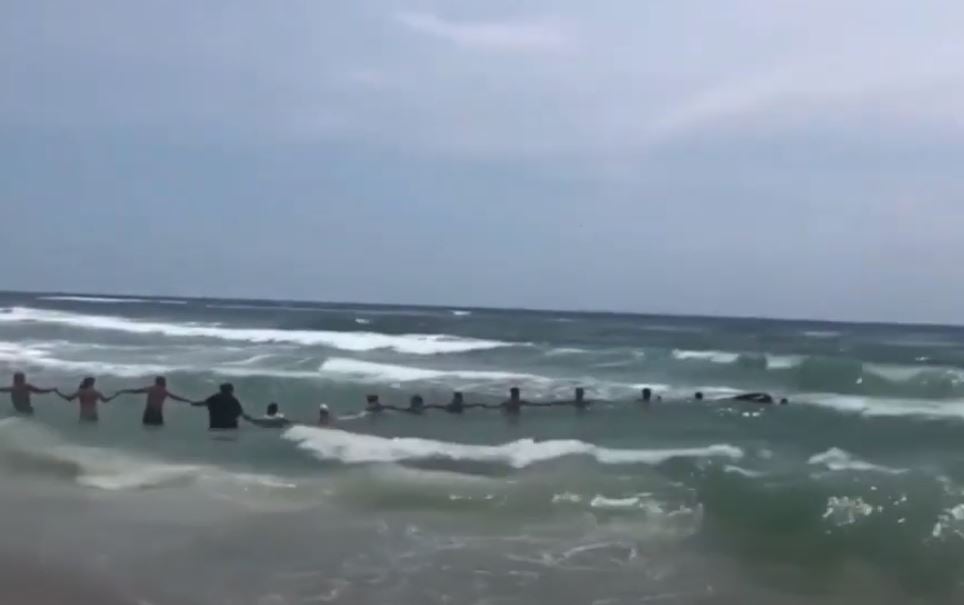 Más de una veintena de bañistas que formaron una cadena humana en una playa de Panama City (costa noroeste de Florida, EE.UU.) lograron salvar de morir ahogada a una mujer que era arrastrada por la corriente marina, según un video divulgado este viernes.