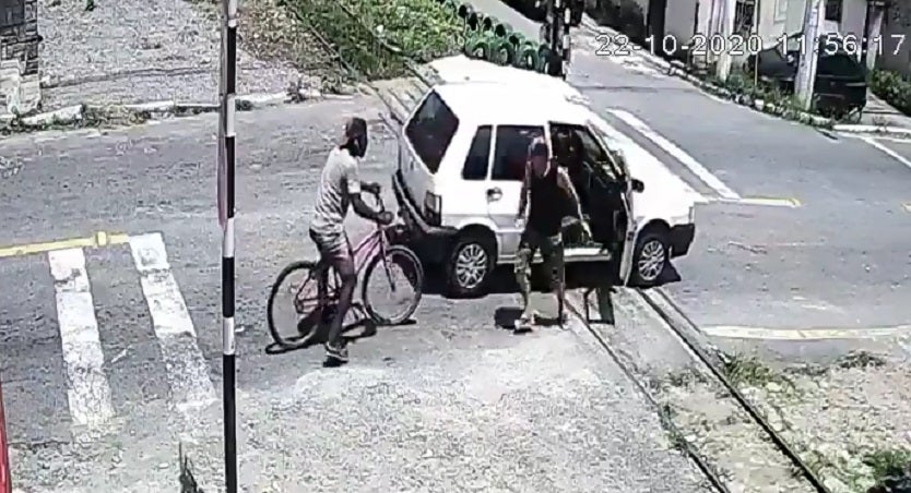 De inmediato el copiloto se baja para intentar empujarlo con la ayuda de un ciclista que pasaba por el lugar, sin embargo, les fue imposible mover el carro y no pudieron evitar el accidente.
