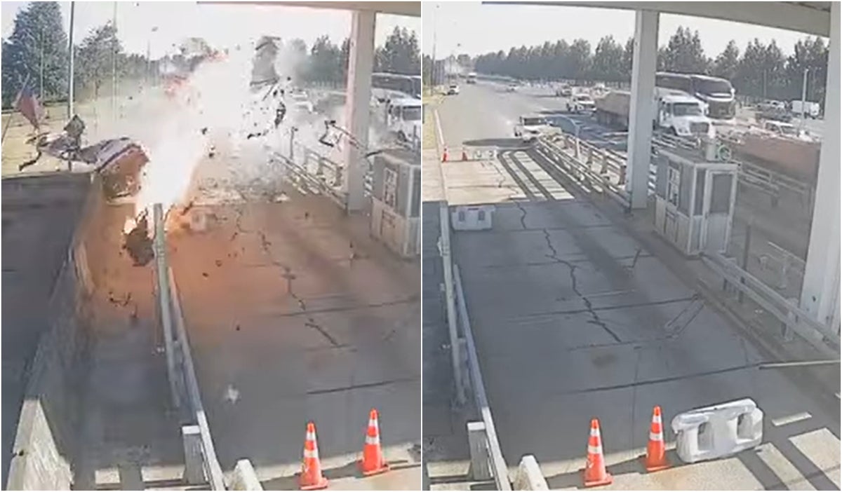El carro, que iba a más de 200 km/h, terminó destrozado y explotó luego de haber impactado contra una estructura de un peaje en una carretera en el centro sur de Chile.