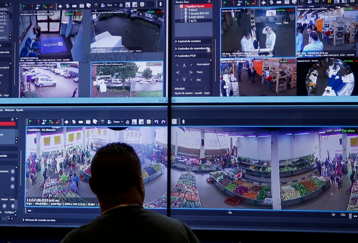 Luego de no lograr cometer su fechoría, el hombre desciende del poste donde estaba instalada la cámara. Pocos minutos después es capturado por la Policía.