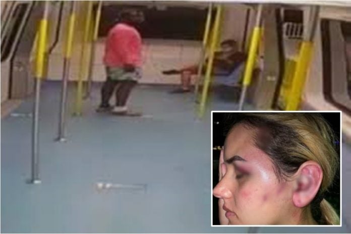 Un afroamericano de 25 años entró a un vagón de un pequeño metro que funciona en el centro de Miami (EE.UU.) y sin mediar palabra empezó a golpear y patear una veintena de veces y sin motivo a una colombiana, la única pasajera en ese momento, según se aprecia en las cámaras de seguridad.