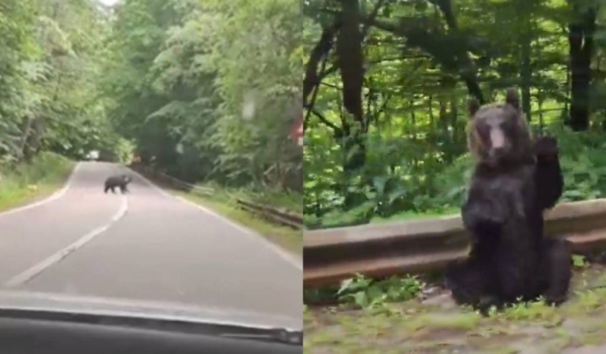 En el clip se puede ver que el oso cruza con tranquilidad la carretera frente al vehículo que se detuvo. Cuando terminó de cruzar, en vez de seguir su camino, el oso se volteó y realizó una acción que enterneció a los turistas.