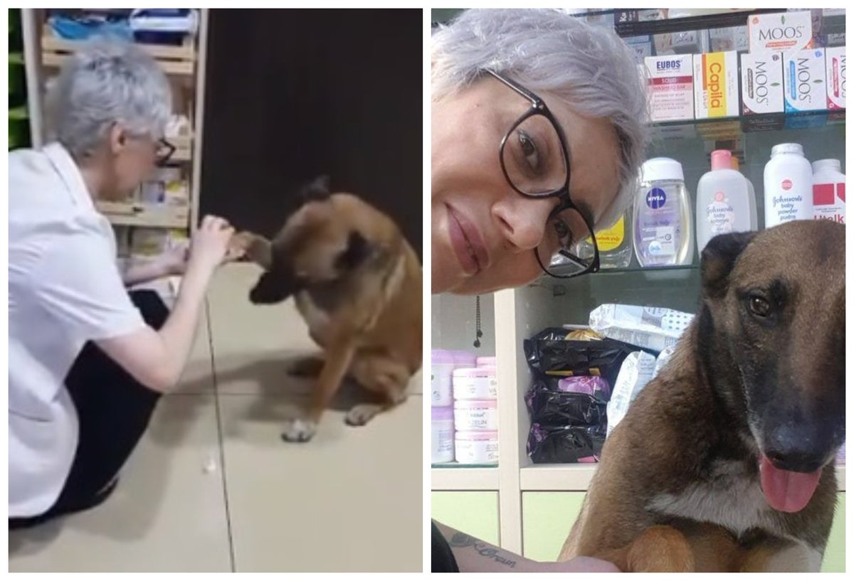 La grabación de una cámara de seguridad instalada en el establecimiento permitió observar el momento en el que el perro ambulante ingresa a la farmacia, pasea por el lugar y logra llamar la atención de su propietaria.
