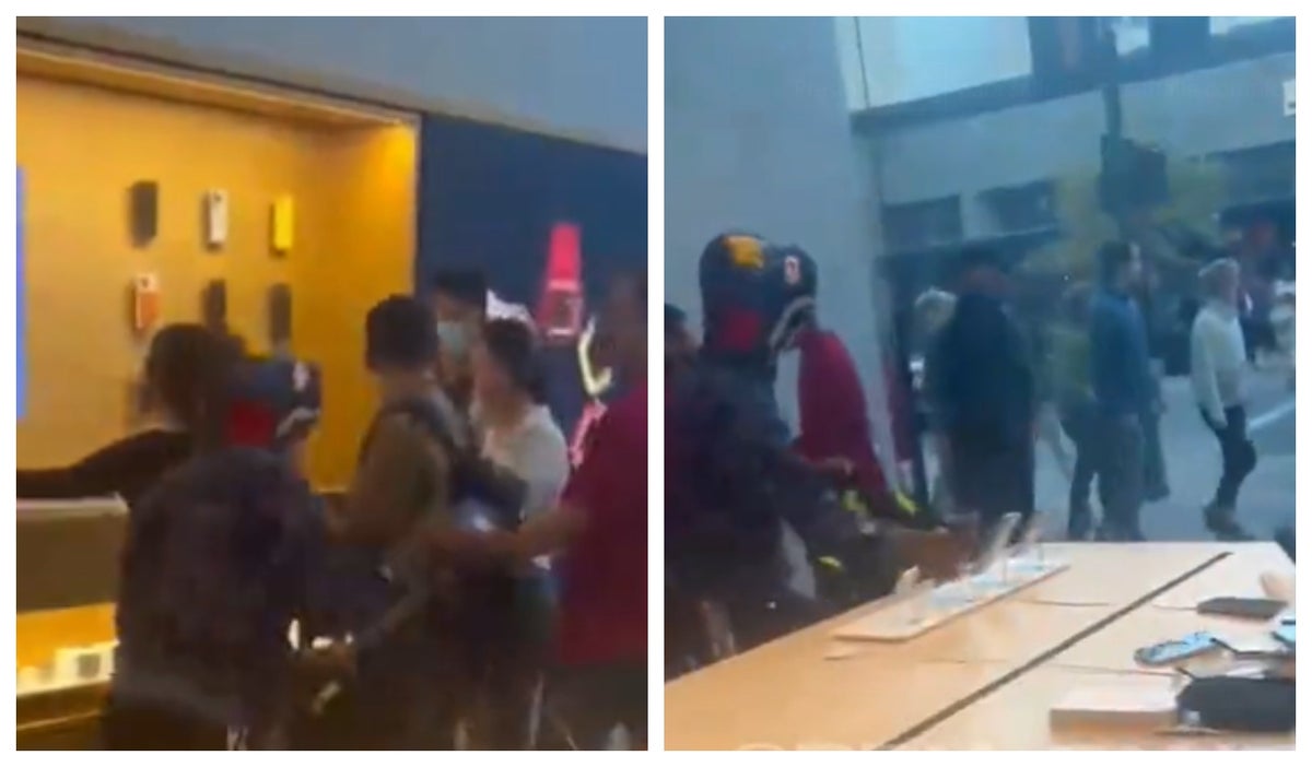 Los hechos ocurrieron en una tienda Apple. Según se ve en un video, dos jóvenes enmascarados entrar a la tienda, y al parecer amenazando a los empleados, comienzan a llevarse computadores y celulares ante la mirada atónita de varios compradores.