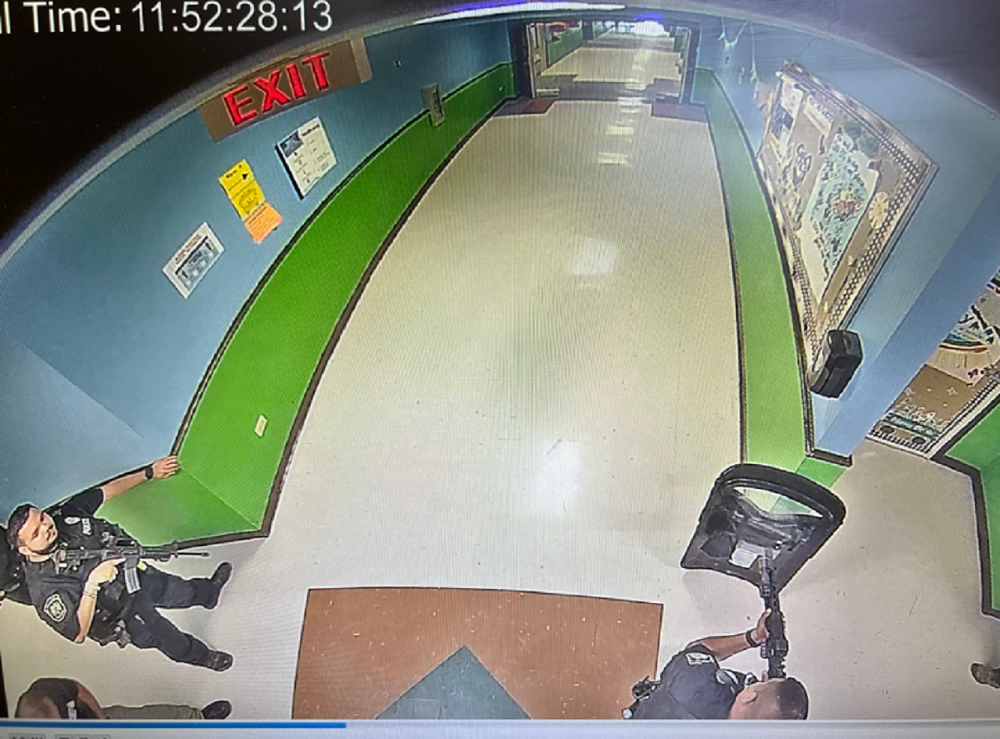 En el informe, se mostraron videos de la cámara corporal de un policía que llegó en el momento de los disparos. “Tenemos que entrar ahí, tenemos que entrar ahí”, gritó el uniformado y pidió tener cuidado con las ventanas. Luego aparecieron policías de Uvalde y de la patrulla fronteriza.