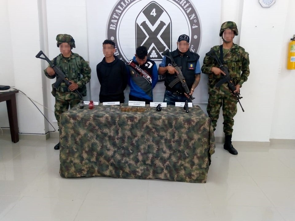 Al momento de su captura, alias ‘Mamarrón’ tenía en su poder una pistola, un revólver, dos granadas de mano, 65 cartuchos de diferentes calibres y un proveedor.