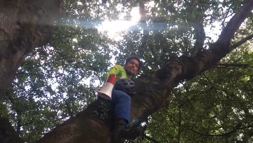 El joven completa cientos de horas protestando en un árbol frente al Ministerio de Ambiente.