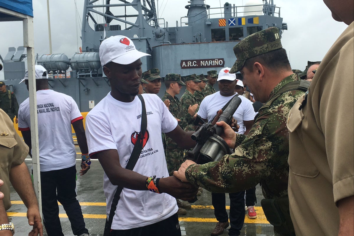 Los exguerrilleros llegaron en el buque ARC Nariño a Buenaventura, donde se presentó la masiva desmovilización del frente'Resistencia Cimarrón' del ELN, entre ellos seis menores de edad.