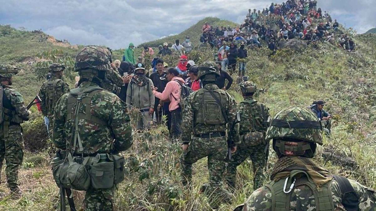 De acuerdo con la Tercera Brigada, tropas del Ejército Nacional sufrieron una asonada que habría sido promovida, presuntamente, por parte del frente ‘Jaime Martinez’, grupo armado ilegal que delinque en esta zona del sur del Valle del Cauca.