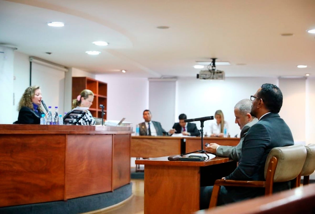 La audiencia de la Policía en la que fue destituido el capitán de la Policía Eduardo Andrés Merchán Prieto Crédito: Foto de Felipe Ariza, de la Procuraduría General de la Nación