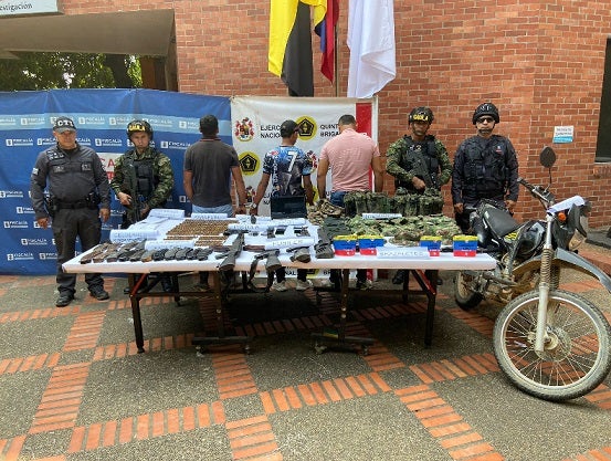 Añadió el oficial que “especialmente tenían víctimas de Barrancabermeja, Puerto Wilches y los alrededores, ha este grupo se les incautó un importante material de guerra entre estos, tres fusiles con 18 proveedores y más de 520 cartuchos para los mismos, una pistola con 2 proveedores y 30 cartuchos, una carabina neumática, una granada de mano, 11 celulares, un computador, material de intendencia de uso privativo de las Fuerzas Militares, 4 brazaletes con logotipos del Frente 12 Isaías Pardo y una motocicleta”.